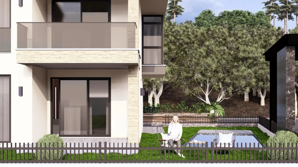 Her detayın özenle düşünüldüğü modern ve zarif mimari, geniş yaşam alanlarıyla ferah ve konforlu bir atmosfer yaratıyor. Büyük pencereler, doğayla iç içe bir yaşam sunarken, yüksek tavanlar ve geniş bahçeler evinizi daha ferah ve özgür hale getiriyor.